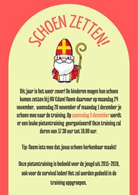 november, woensdag 26 november of maandag 1 december je schoen mee naar de training. Op woensdag 3 december wordt